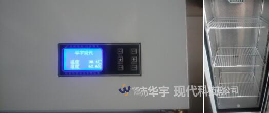 柜體頂部一般放置溫度濕度控制模組系統(tǒng),連接系統(tǒng)LCD總表。系統(tǒng)LCD總表由藍(lán)屏LCD液晶顯示柜內(nèi)溫度濕度等數(shù)據(jù),另在功能按鈕面板上可實(shí)現(xiàn)設(shè)置和手動控制。